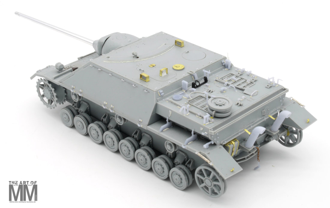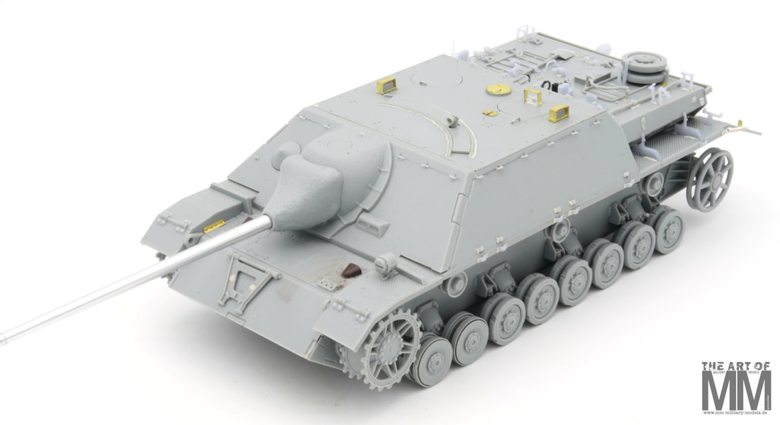 Dieser Jagdpanzer IV L/70 ist von der 10, Pz.Gren.Div., mit der Nummer 442, zu sehen nach Kriegsende 1945 in der Tschechoslowakei. Gut zu erkennen sind hinten, die gebogenen Flammenvernichter. Ich werde dieses Fahrzeug in einem besseren Zustand darstellen, ca. September 1945. Auch werde ich ein Detail - up -Set im 3D Druck dafür entwerfen. Ich bin selber gespannt ob dies alles so funktioniert.